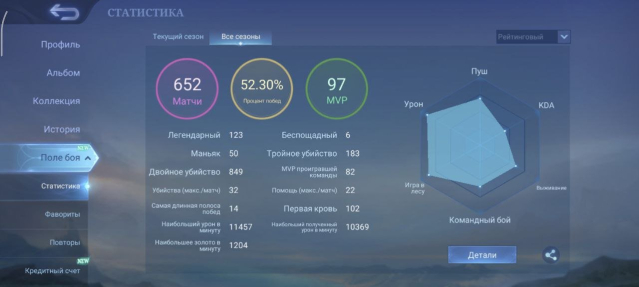 Процент побед: 52