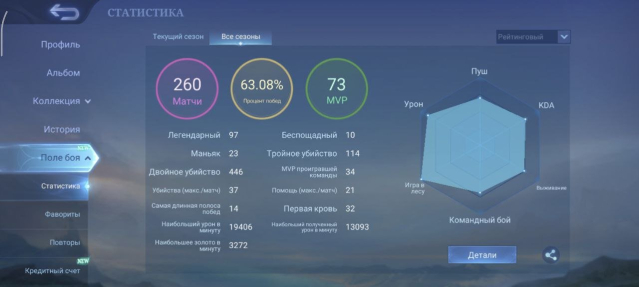 Процент побед: 63