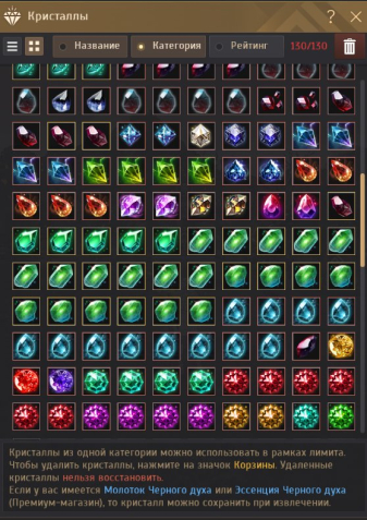 Все пресеты под кристаллы открыты, 130 слотов, 16 нитей надера.