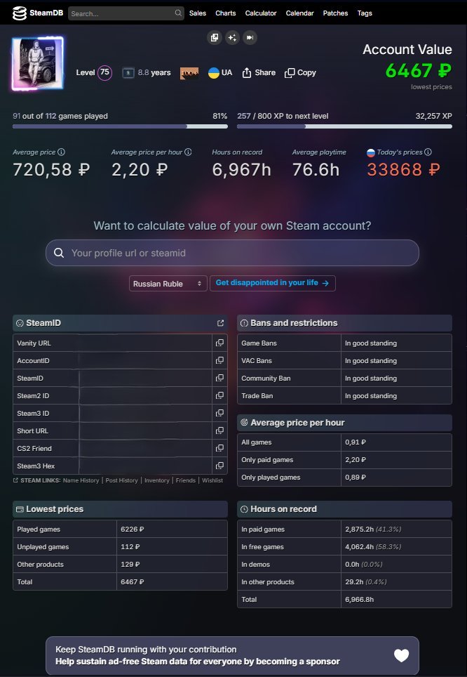 Подробное описание: Цена личного аккаунта обусловлена тем, что он привязан к стиму, поэтому продаю и его тоже. Стим аккаунт прокаченный с играми, он тоже стоит денег, все оценено по существу. Причина продажи из-за отсутствия времени и желания играть. Ниже приведены скрины.