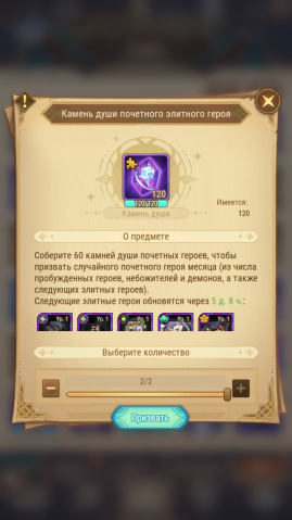 💜 120 Камня душ почетного элитного героя — 2 Эпических героев