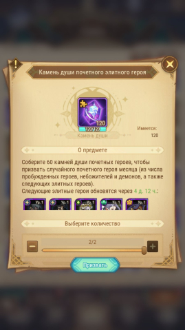 💜 120 Камня душ почетного элитного героя — 2 Эпических героев