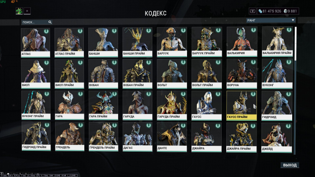 Коллекция: В наличии все варфреймы (или почти все), включая все Prime-версии.