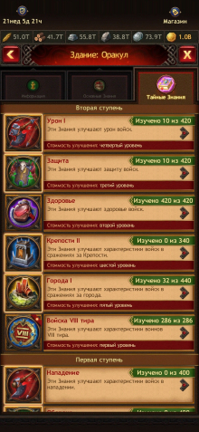 Прокачка стоит и шот на осаду, шпионов и крепости
