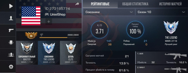 ⚡️ ПОЛНЫЙ ДОСТУП ⚡️ АККАУНТ ⚡️ АВТОВЫДАЧА ⚡️ СМОТРИТЕ ОПИСАНИЕ ⚡️Звание: Legend