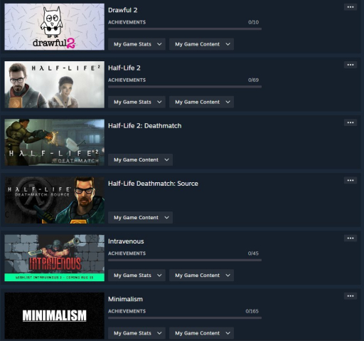☑️Half-Life 2; Cakey's Twisted Bakery; Castle Break; Dark Sector; Drawful 2; Intravenous; Minimalism; Pankapu; UNLOVED; Unplagued
