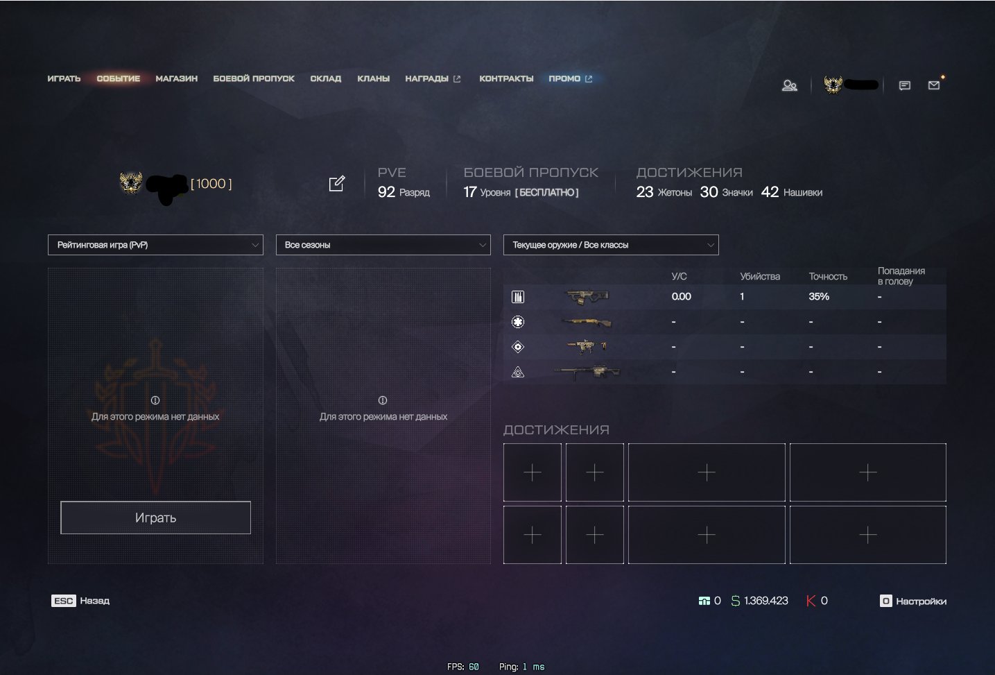 ✅0 Сыгранных ПВП/РМ матчей ✨