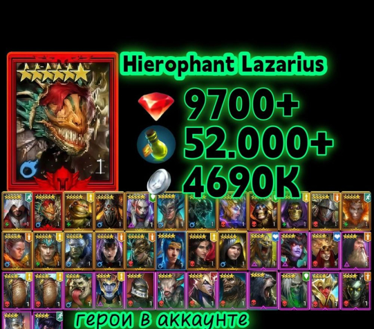 ⚡️ ПОЛНЫЙ ДОСТУП ⚡️ Hierophant Lazarius ⚡️ 9700+ Рубинов ⚡️ 52000+ Энергия ⚡️ СМОТРИТЕ ОПИСАНИЕ ⚡️Эпических героев: 21