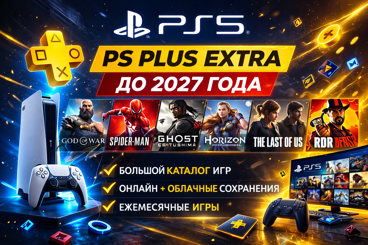 Продам аккаунт PSN с PS Plus Extra до 23.02.2027