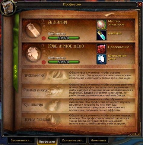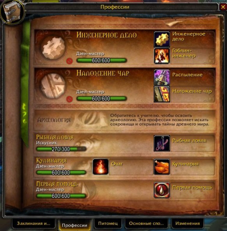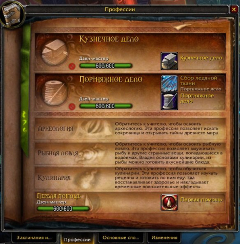 Профы: Энчант, инжа, кулинария, первая помощь 600.