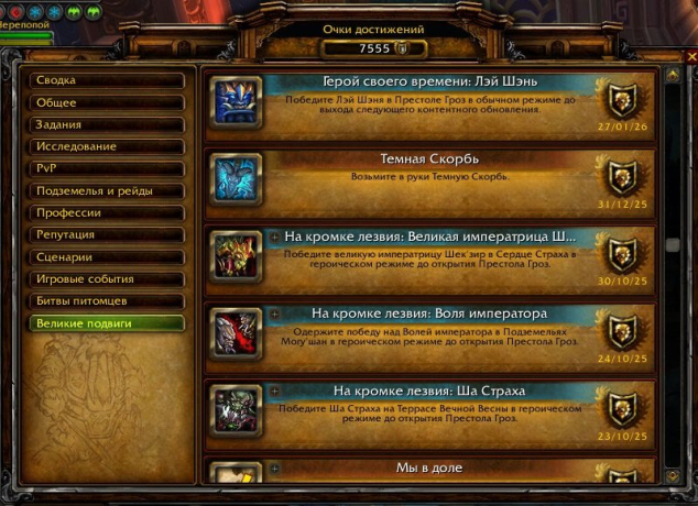 Выполнены голд челенджи 9\9. Фул полеты, лучшие сумки. много вещей на трансмог. На текущий момент выполнена вся цепочка на плащ, взят метасокет. Есть кромки за ХМ трех прошлых рейдов пандарии, ПГ закрыт в нормале.