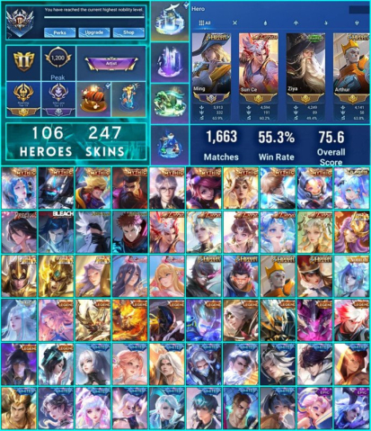 Краткое описание: Nobility 10 HOK, 247 Skins, 9/9 Mythic Skins, 1 Flawless Xia Qiao, JJK & bleachПодробное описание: Premium Hok Acc,