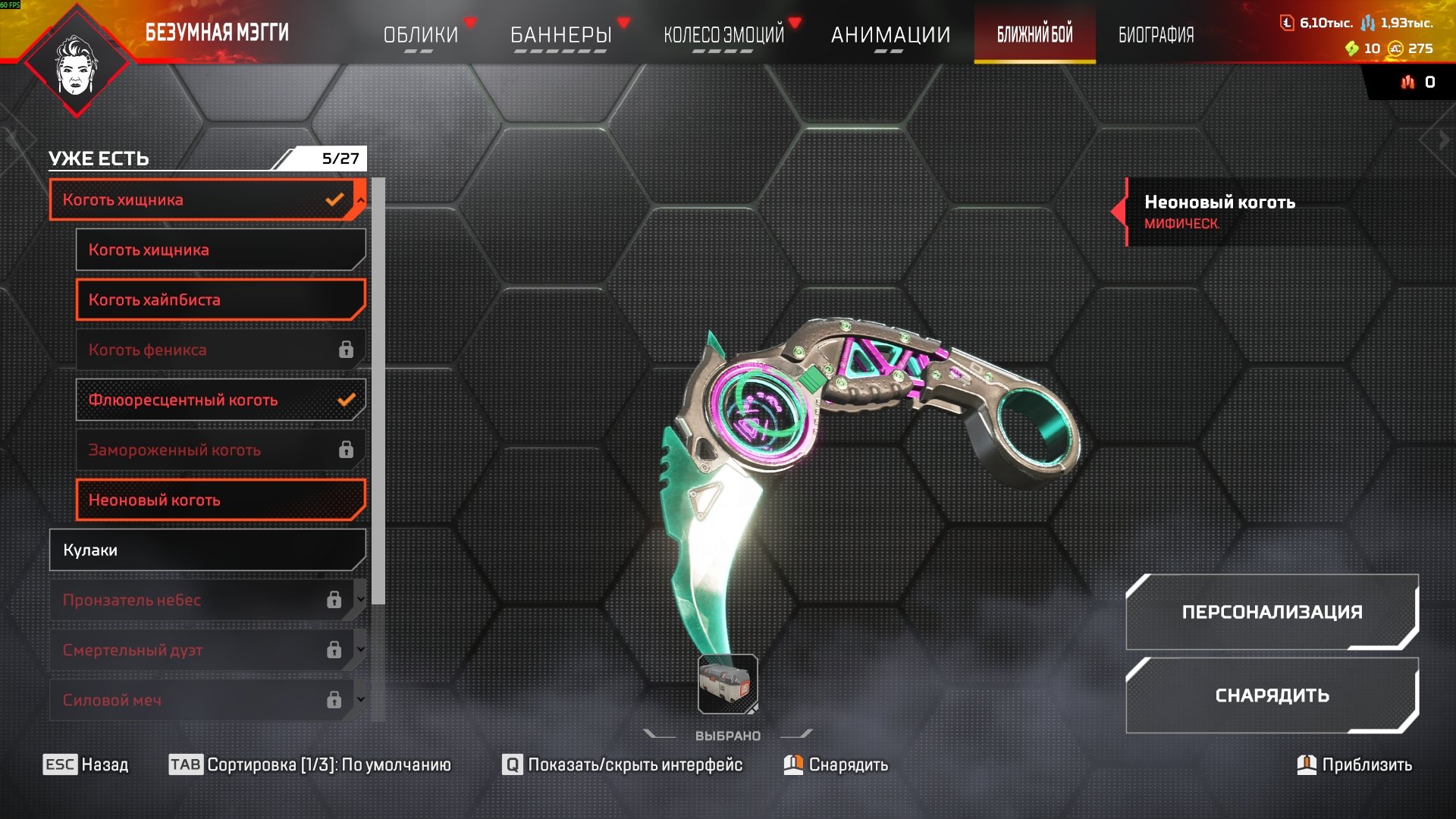 На аккаунте 63 легендарных сэтов и 53 легендарных скинов на оружие.