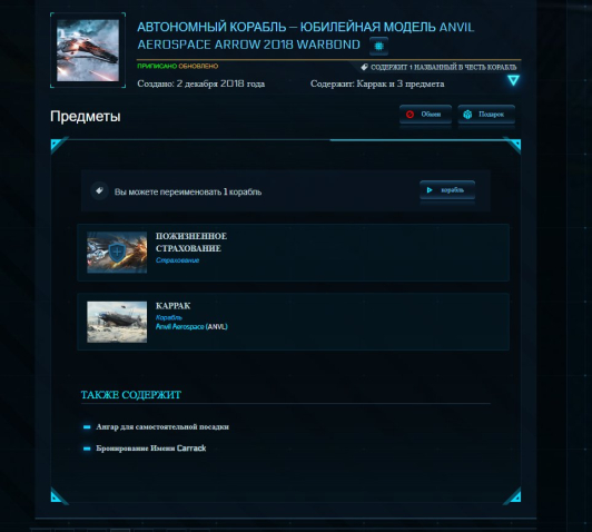 Краткое описание: Аккаунт с Carrack LTI + Prospector +Mustang Alpha Star Citizen + Squadron 42 + БонусПодробное описание: Аккаунт с Carrack ( Пожизненное страхование LTI ) + Prospector +Mustang Alpha Star Citizen + Squadron 42 Так же содержит подарочные скины предметы и многое другое. Carrack с пожизненной страховкой и уникальной возможностью дать свое имя кораблю которое будет отображаться в игре. Prospector: страховка 72 месяца. Mustang Alpha Star Citizen + Squadron 42 29 ноября 2018 г дата создания аккаунта. Перед покупкой пожалуйста напишите продавцу. Если я не онлайн просто оставьте сообщение, отвечу в течении 5-10 мин.