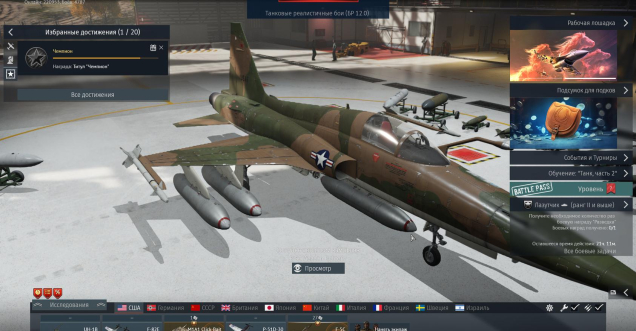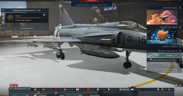 На аккаунте содержится большое количество премиум техники, такой как Ja37, F-5C, Abrams, F-16 OCU, Al-Khalda, Vigar и другие, ветка Швеции — 6 ранг, ветка США — 5 ранг