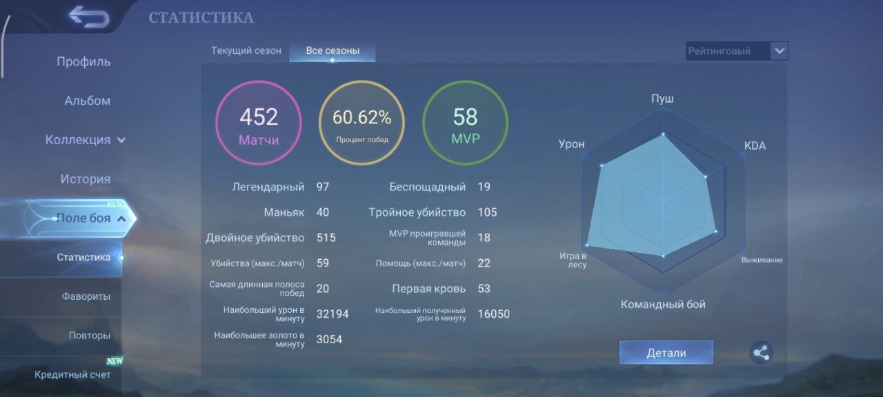 Процент побед: 67
