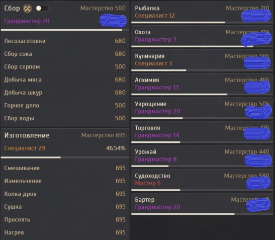Подробное описание: Страж 65 лвл. Ниндзя 64. Палатка. Топ фея. Горничные склад 24 аук 22. 15 петов опыт, ремесло, рыбалка. Компас.Бесконечные банки ХП МП. 20 персонажей. Илюзия грез.Энегрия 630 Влияние 430. Много према бафов бустов. 5 костюма.Ссылка на гармот garmoth.com/character/UOND57Ndw6