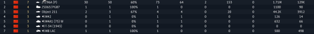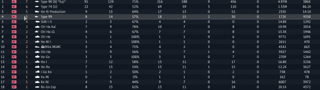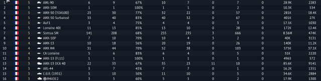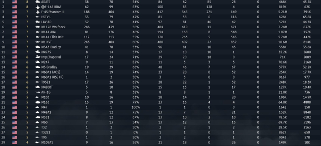 Танки: 2с38, M1128 Wolptack, M1 KVT, T-72AB (TURMS-T), CV 90105, Leopard 2 (PzBlt 123), M1A1 Click-Bait, Type 90 (B) «Fuji», ZTZ96A (P), Leopard 1A5NO2, Merkava Mk.2D, Rooikat 105, Type 74 (G), БМД-4М, T-55AM-1, Souma SM, Turm III, Объект 120, SPz 12-3 LGS, T-34-100, T14, KB-2 (Зис-6), Ru251.
