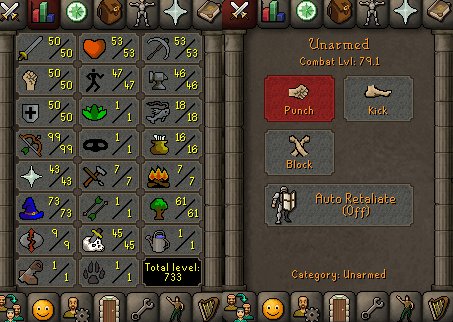 Игра: Old School RuneScapeКраткое описание: TTL 733 CL 79 50 ATT 50 STR 50 DEF 99 RAN