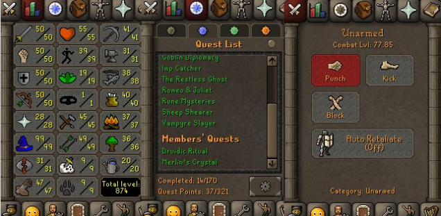 Игра: Old School RuneScapeКраткое описание: TTL 874 CL 77 QP 37 [NO EMAIL SET, 99 MAGE + MORE!]