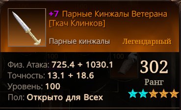 Сервер: EU 1Краткое описание: Парные Кинжалы +7 302 Ранг