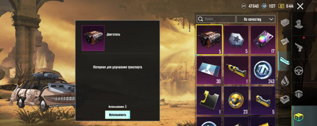 На акаунте есть 1материал и 5 маленьких обломков