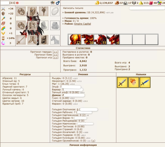 Сервер: HeroesWM.ruКраткое описание: 11 Уровень, Демон ,2.1кк Голды, Ресы, Старые Арты