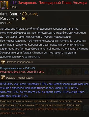 Название: ✅ лег. Плащ Эльмора+15 (7%сил.крит/4%физ).