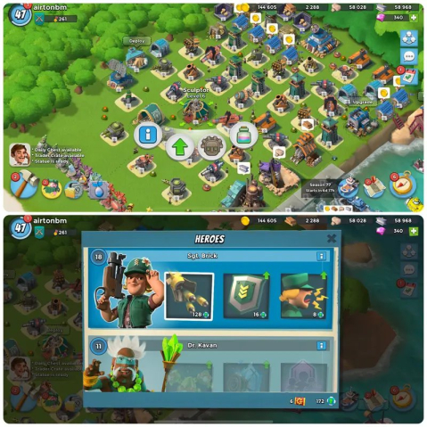 Платформа: Supercell IDКраткое описание: Level[47]-Headquarter[19]-Hero[18-11]-Gunboat Lvl 17[6x]-Vp[261]