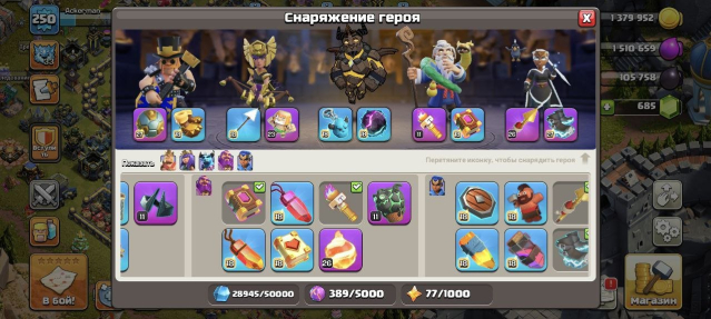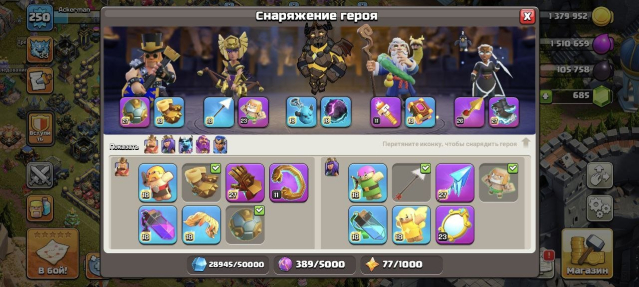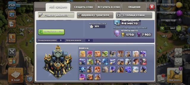 Уровень Ратуши: 17Краткое описание: ⚡️17𝐓𝐇 FULL 96%【250𝐋𝐕𝐋】⚡️💎ЛЕГ ОФОРМА💎🔵【ГЕРОИ 100/100/75/50】🔵 💙12 ЭПИК СНАРЯГ💙🍀ПЕРЕПРИВЯЗКА🍀