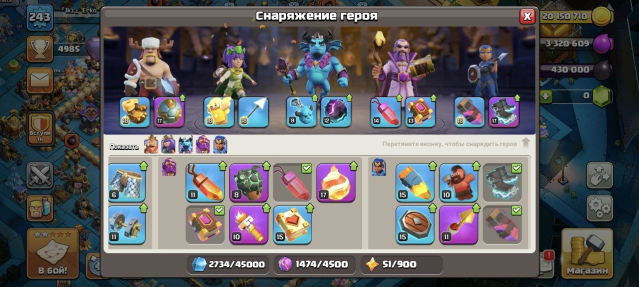 Уровень Ратуши: 17Краткое описание: ⚡️17𝐓𝐇【243𝐋𝐕𝐋】⚡️💎8 ЭПИК СНАРЯГ 💎🔵【ГЕРОИ 100/100/75/50】🔵 💙ОФОРМА MASH-A-RAMA 💙🍀ПЕРЕПРИВЯЗКА🍀