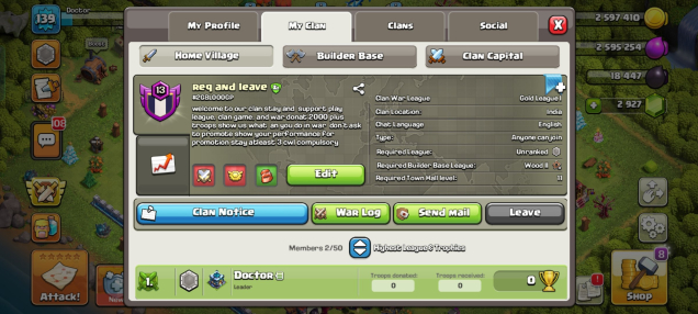Краткое описание: 🟥⬛🛑Clan Level 13 REQ & LEAVE 🛑⚫ Gold 1 🛑⚫CLAN CAPITAL 7 🛑⚫WIN- 100 / LOSS- 96 🛑⚫ Fast Delivery🛑⬛🟥