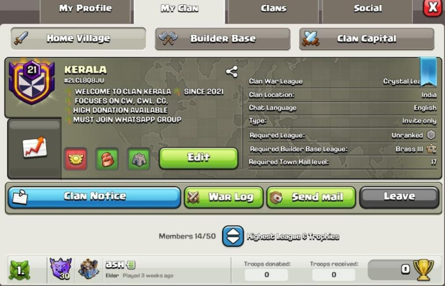 Краткое описание: Clash of Clans Клан 21 Уровня