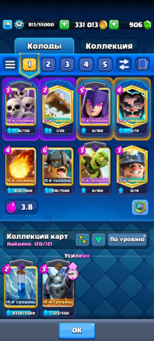 ✅ Много доната вложено – большинство карт и эволюций уже прокачаны.