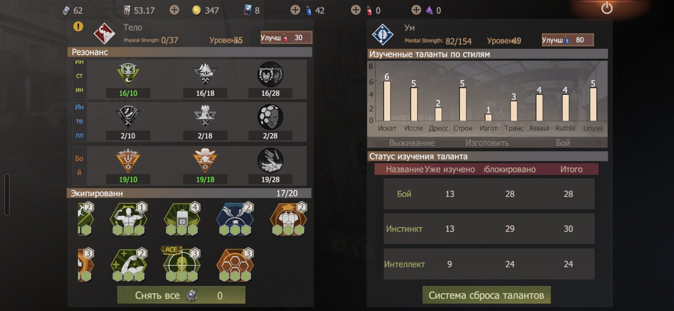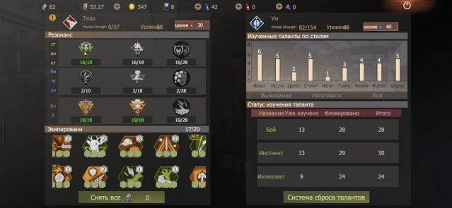 •Дополнительная выкладка талантов