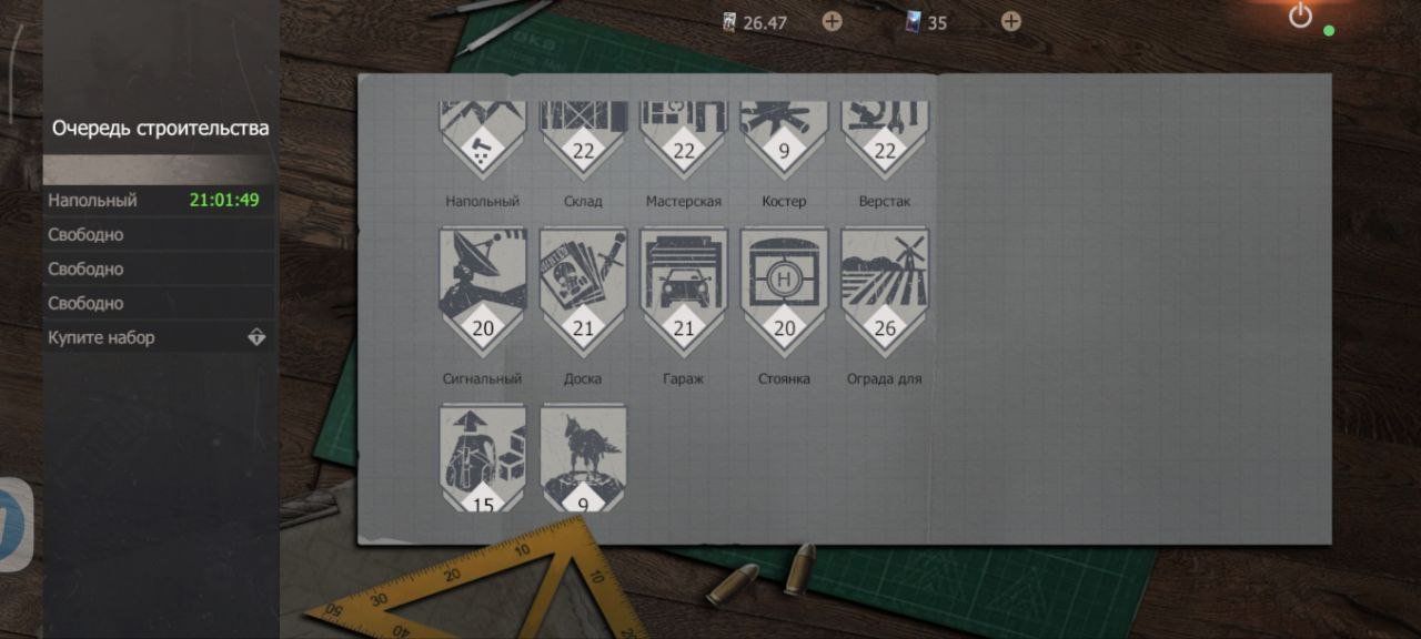 •Отлично прокачана личная база: 45 фиол колб, много компонентов улучшения базы, интересные постройки и транспорт, куча ресурсов, куплена ракетница