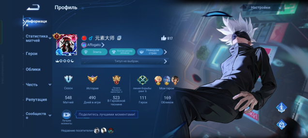 Краткое описание: Продаю аккаунт так как уже давно не играюПодробное описание: Есть скин на Сатору годжо ещё много лимитированных скинов и эффектов