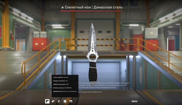 Краткое описание: 🧊🧊【★ Скелетный нож | Дамасская сталь】🧊【Износ: Немного поношенное】🧊【На Тп ≈ 30к】🧊🧊