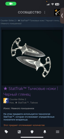 Краткое описание: 👑ТОП ФЛОАТ👑StatTrak tm НОЖ🤩ТРЕЙД ДОСТУПЕН🤑ТЫЧКОВЫЙ НОЖ🌍ЧЁРНЫЙ ГЛЯНЕЦ (НЕМНОГО ПОНОШЕННОЕ)🎮
