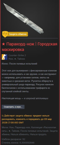 ★ Паракорд-нож | Городская маскировка, Продажа, Нож, Паракорд-нож, Тайное, После полевых испытаний
