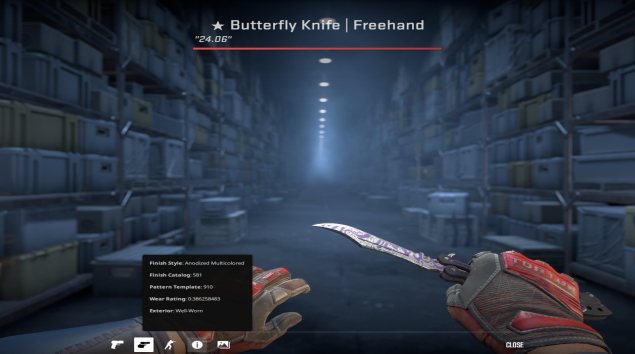 🧇♠️🧇 НОЖ БАБОЧКА Ручная роспись 🧇♠️🧇🎇 Поношеное 0,386 🎇 Butterfly Knife | Freehand, Продажа, Нож, Нож-бабочка, Тайное, Поношенное