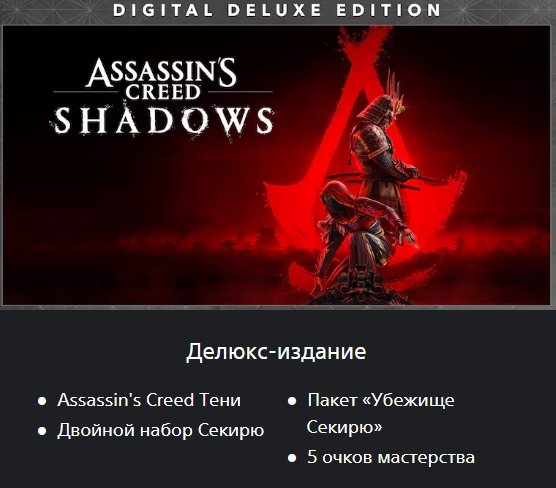 Платформа: PSКраткое описание: ❤️🤍Assassin's Creed Shadows — Deluxe Edition🎮PS5🎮На ваш или наш аккаунт🌍Регион — Турция🌍