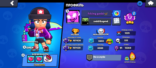 Краткое описание: АККАУНТ С 3 АЛМАЗОМ. СМОТРИТЕ ОПИСАНИЕ.Подробное описание: На аккаунте присутствует рекорд в лиге 3 алмаз. 115 тысяч кубков. Создан в 2024 году.