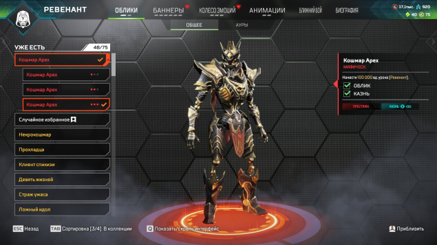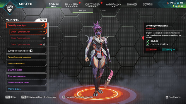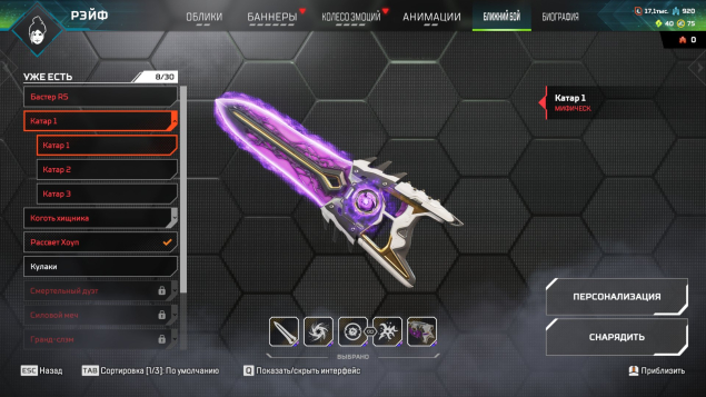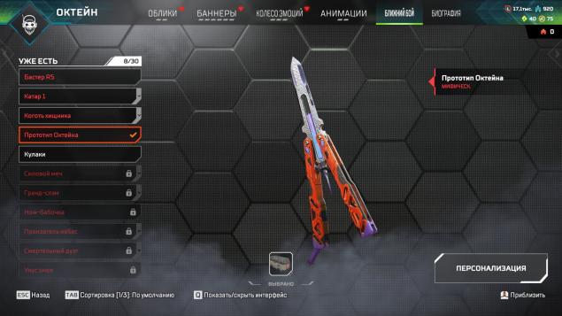 датчик энергии(Ватсон), облики на октейна, патфайндера, альтер, ревенанта.