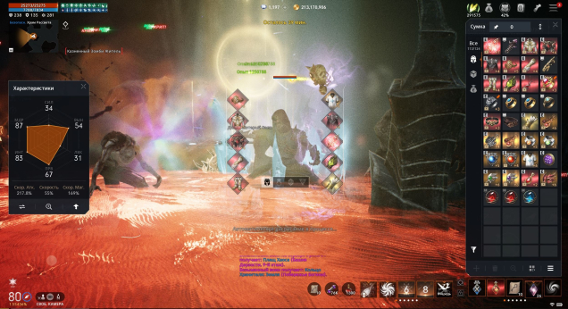 — Другие Характеристики: Шанс Двойного Урона 73%, Шанс Тройного Урона 17%, Доп урон крит атаки 68, Увеличение Урона от Оружия 157%, Увеличение Урона от Умений 188%, Сопротивление Оглушению 43%