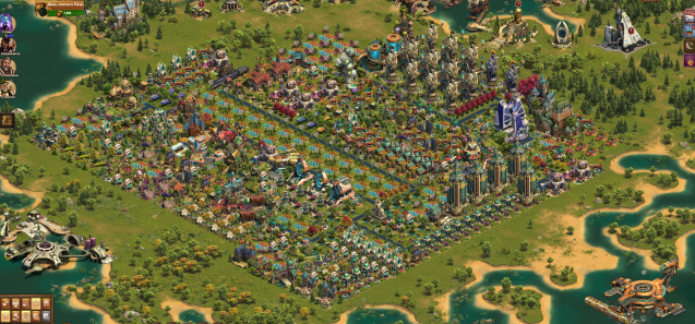 Открыты все расширения для всех ВС, карта пройдена вся. Огромное количество товара и интересных зданий на складе. Брюлей на складе не очень много (2700-2800), так как их добывание не являлось самоцелью. Монет, ресурсов и медалей в избытке.