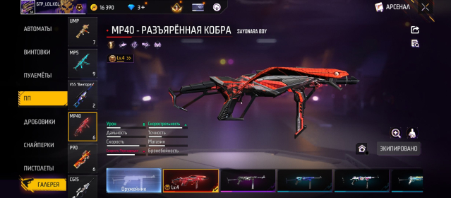 MP40 «Разъяренная кобра» (4 lvl) — со всеми спецэффектами попадания и убийства.