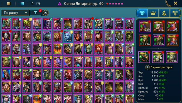Двуликий 15, Дьявол пройден 25, но не настроен, нужно пофармить сет регена и одевать Анири и Дренга. Энки и шмота на аккаунте много.
