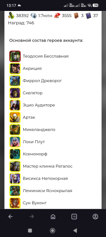 Мифических героев: 1Уровень аккаунта: 1