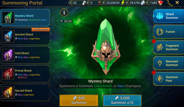 🔵 Ancient Shards: 96 🟣 Void Shards: 21
